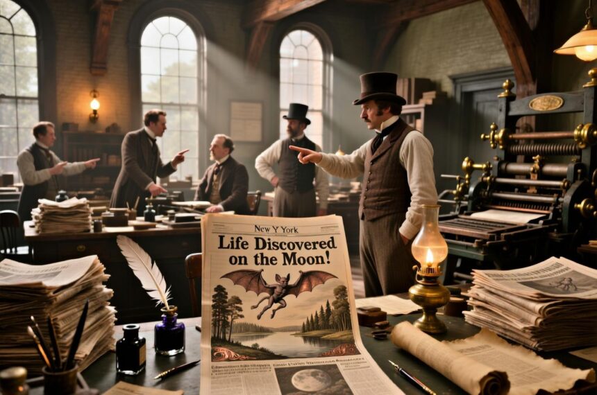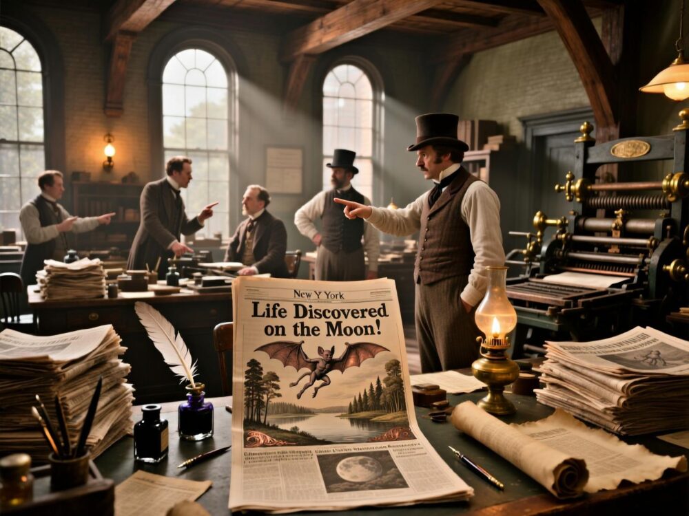 It was the summer of 1835. The world was still enchanted by telescopes, comets, and the tantalizing possibility of other worlds teeming with life. The night sky was a mystery waiting to be decoded, and humanity was desperate for news that would lift its gaze beyond the daily grind. And then came The Great Moon...