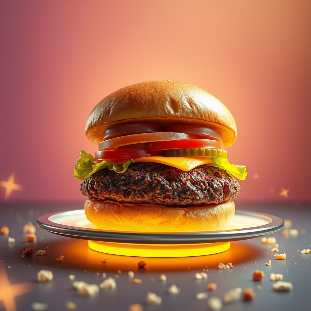 The star of the show is the patty itself, crafted from synthesized proteins extracted directly from asteroid dust. Yes, you read that correctly—asteroid dust. According to reports, these proteins are not only rich in nutrients but also imbued with a subtle mineral tang that no Earth-based ingredient could replicate. Some claim the taste resembles a blend of rare Wagyu beef and something entirely indescribable, like the essence of a supernova. Whether or not this is an exaggeration remains unclear, but one thing is certain: it’s unlike anything you’ve ever tasted.