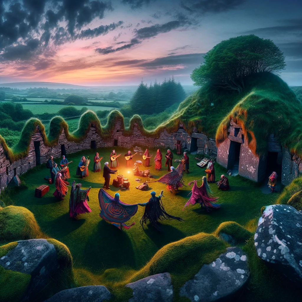 These rituals at fairy forts often involve elements of earth-based spirituality, such as the celebration of seasonal festivals like the solstices and equinoxes, which are thought to align with the natural energies of the sites. Participants engage in practices like drumming, chanting, and dancing to forge a connection with the spiritual essence of the place, seeking healing, enlightenment, or communion with the elemental and ancestral spirits believed to inhabit these sites.